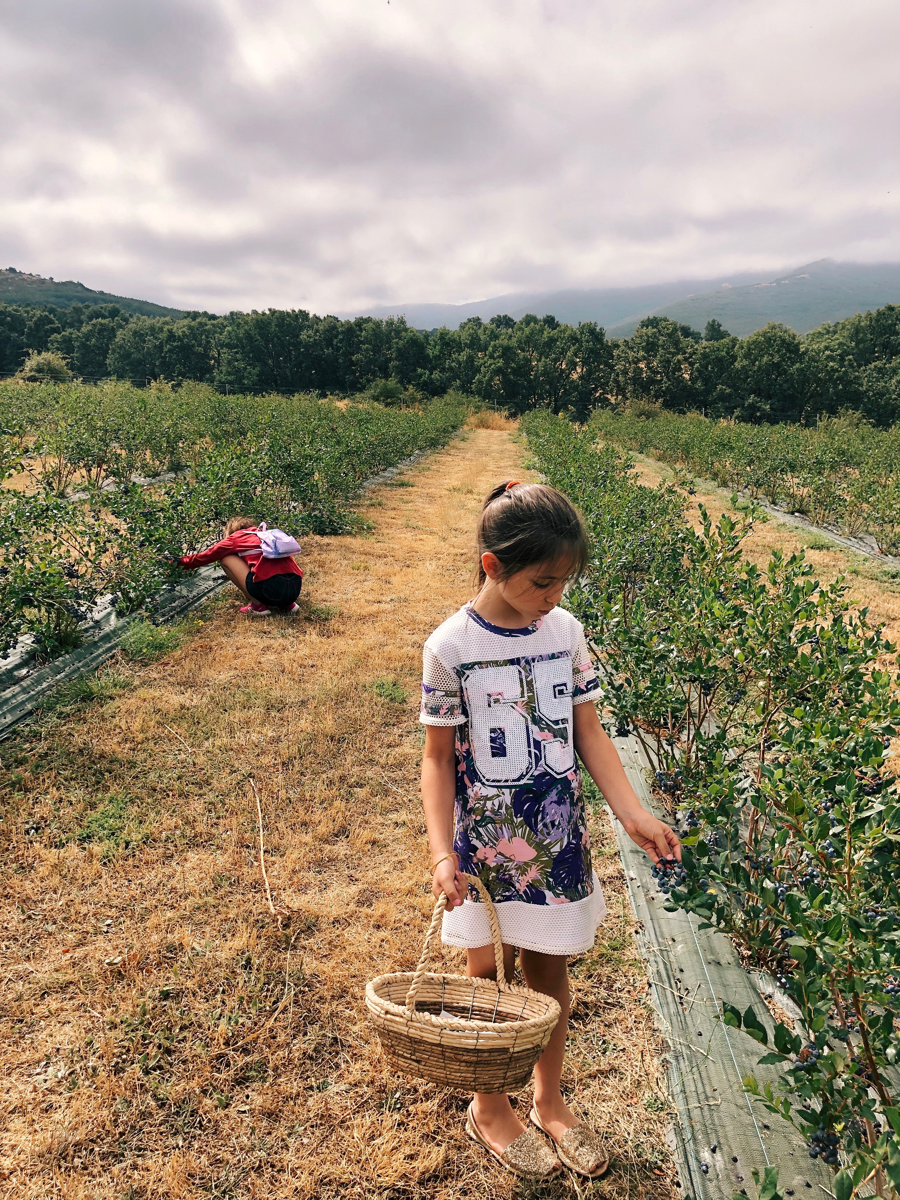 Nosotros nos levantamos tempranito el sábado para llegar más o menos a la hora que abren y aunque las niñas protestaron un poco por el pequeño madrugón (sobre todo Aurora que se me está haciendo adolescente y duerme como una marmota -dentro de poco me veo pasando la aspiradora delante de la puerta de su habitación para que se levante como me hacía mi madre a mí cuando llegaba tarde y dormía por la mañana), mereció muchísimo la pena llegar pronto porque tuvimos la finca para nosotros solos un buen rato y además tuvimos ocasión de aprovechar mejor la visita. Aunque debo decir que nuestra intención era estar allí aproximadamente una hora y al final estuvimos toda la mañana hasta la hora de cierre! Ahora que lo pienso, tal vez tuviera que ver algo el hecho de que como la fruta es ecológica y la puedes ir probando directamente de la mata, digamos que se tarda un rato en llenar las barquetas porque un arándano va a la cesta pero otro a la boca…