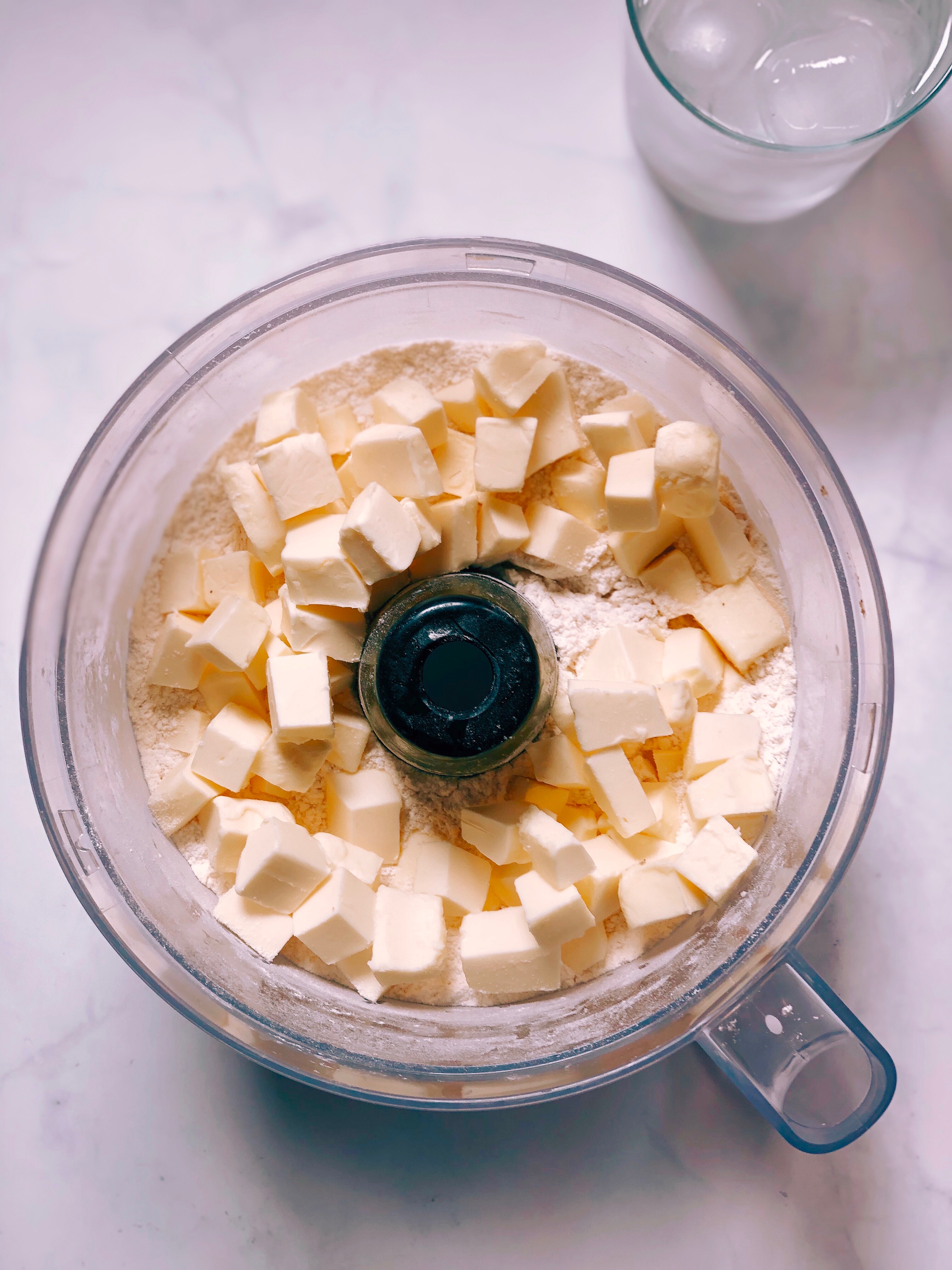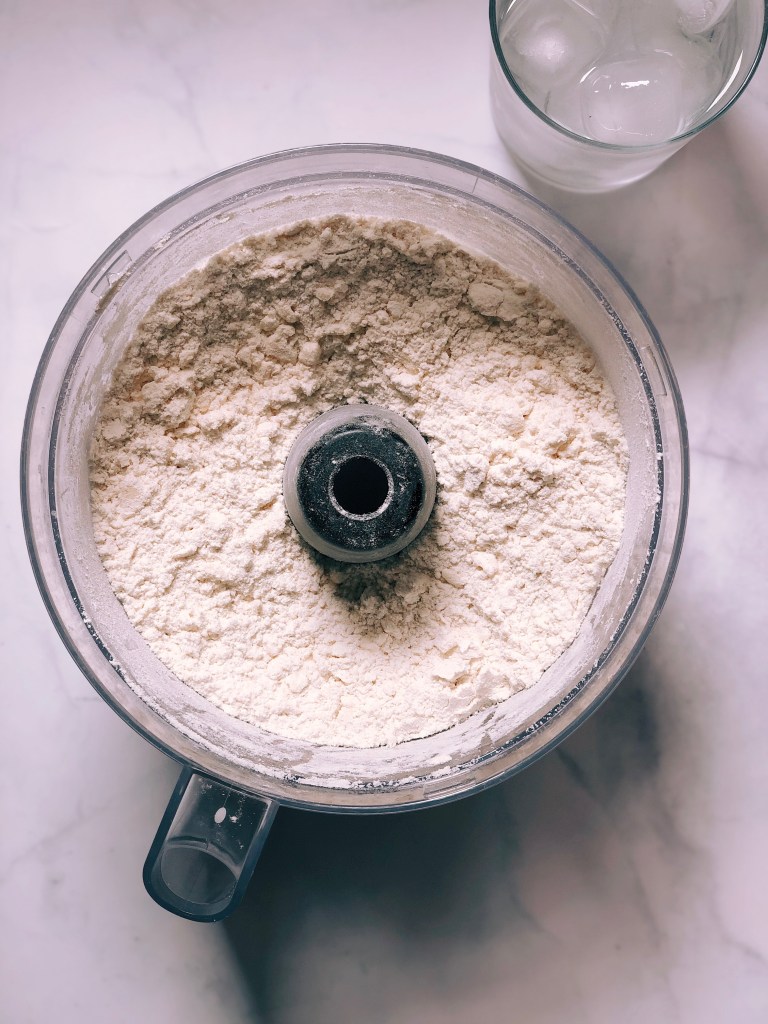 2. Second key is a food processor. Now if you don’t have a food processor, you can certainly achieve a perfect pie crust without one. After all, I don’t think American grandmothers relied on one back in the day. You’ll just have to cut your ingredients together using a pastry cutter and then use a spatula to work in the water. It takes a bit more elbow grease and patience, but making your crust by hand can still yield great results. So I would say that a food processor is not essential but it makes the whole process of making Pie Crust from start to finish a matter of 5 minutes.