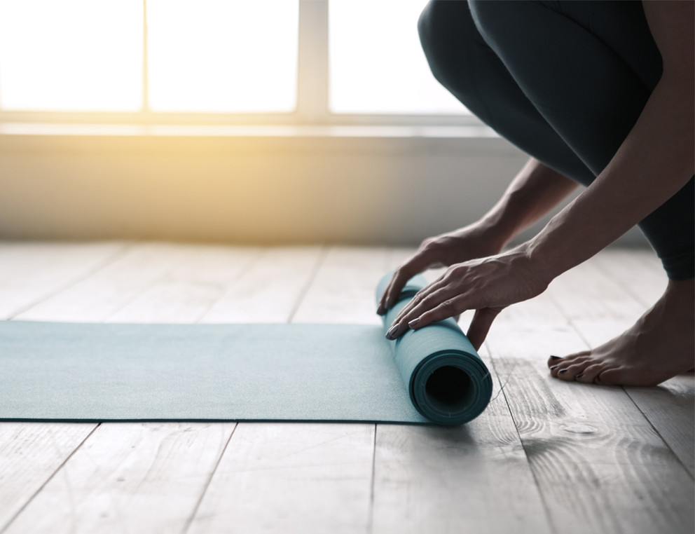 A mat is pretty much all you need to work out at home. There are thousands of workout routines out there that are body weight based and perfectly effective. And if you are into weight lifting or like to use a specific type of equipment you can always start by buying items little by little once you feel comfortable with the kind of workout you like and start building your little gym from there. Maybe a few dumbbells, a jump rope, resistance bands or a kettlebell. Those are all pieces of equipment that take up minimal space and that you can store along with your mat. And in the meantime, two water bottles are fantastic weights.