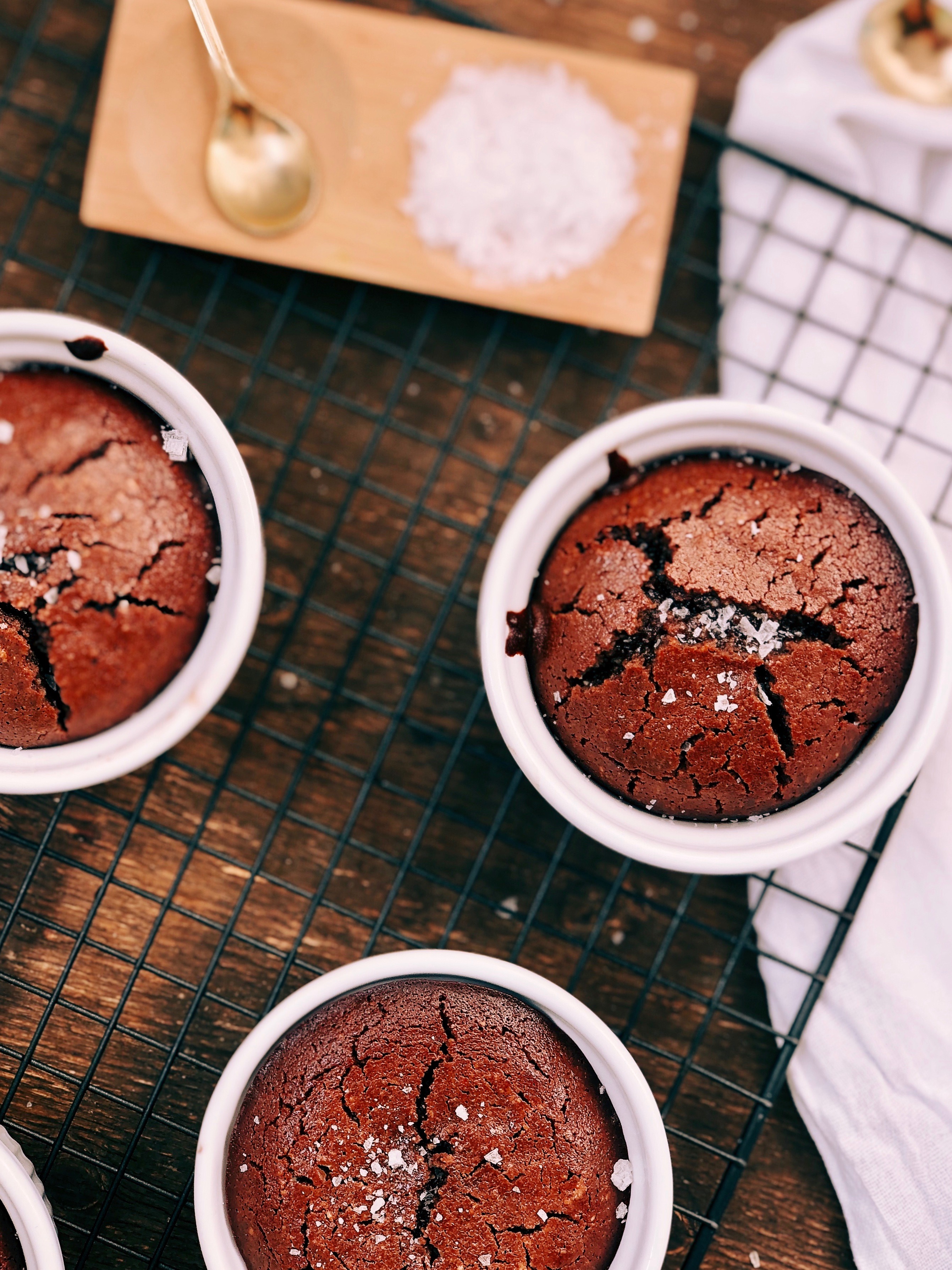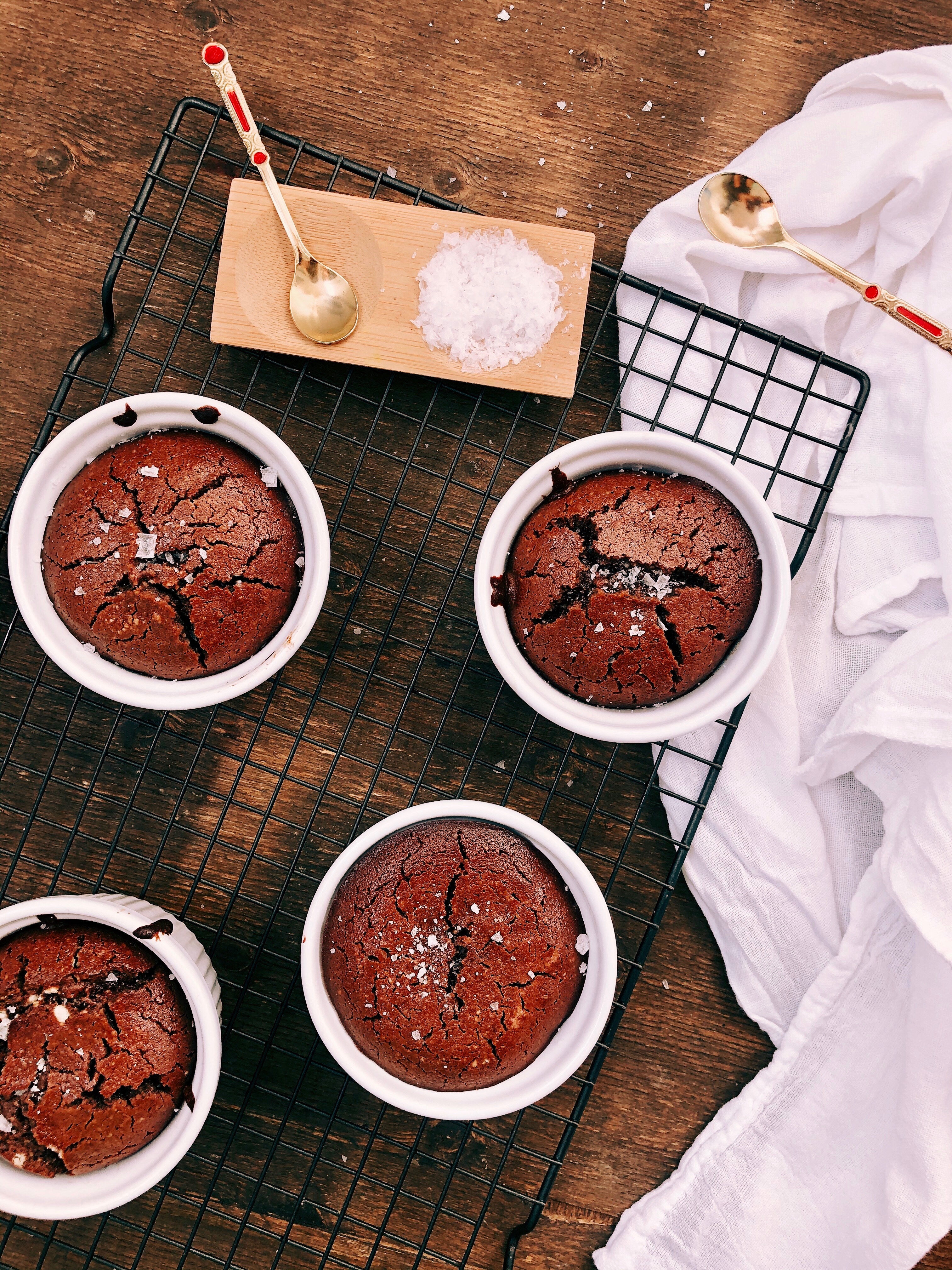 Tened en cuenta que si usáis un molde de muffins para hacer estos pastelitos, las cavidades de un molde de tamaño estándar (de 12 muffins) suelen ser algo más pequeñas que cada uno de los ramequines, por lo que tendréis que ajustar el tiempo de horneado. Seguramente se harán en unos 3-4 minutos menos que los de mi receta.