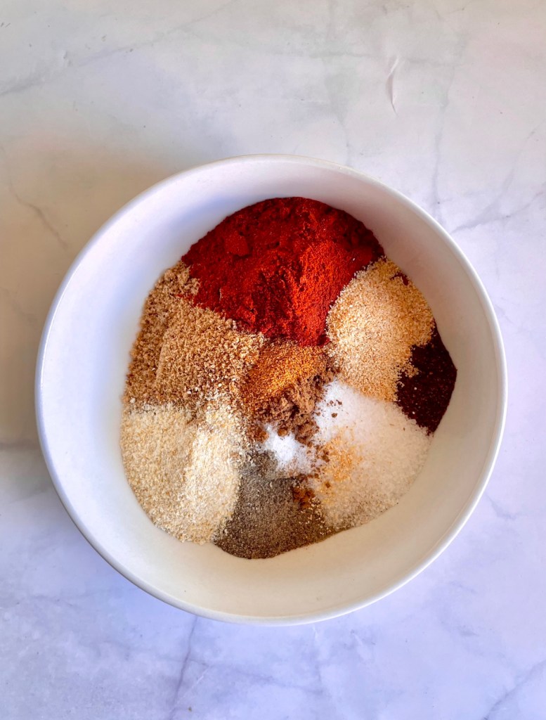 Este aderezo es otro de mis grandes logros cocinillas. Como comentaba, aquí va a estar la clave. Este aderezo es una mezcla de sabores que tiene el equilibrio perfecto entre caramelizado, ahumado, y especiado. Tiene una base de azúcar moreno, que lejos de hacer que las costillas queden con sabor dulzón, ayuda tanto al sabor como a la textura caramelizada y ligeramente pegajosilla que necesitamos para poder chuparnos los dedos. En la lista de ingredientes os he marcado los que considero que pueden ser opcionales. El resto es preferible que no los omitáis.