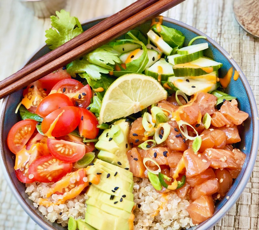 A estas alturas ya estaréis todos más que familiarizados con los Poke Bowls. Este plato tradicional de Hawaii que hizo su aparición en la escena culinaria mundial allá por el año 2016 y que desde entonces no ha dejado de cautivar allá donde llega. En todas partes no hacen más que abrirse pequeños restaurantes de poke y desde luego no faltan las razones. Los poke son un plato súper divertido, que combina un montón de ingredientes saludables, que sacia y además es muy muy sabroso. Yo soy una gran fan del poke por todo eso, pero además porque es 100% adaptable y personalizable. Cada poke puede ser hecho a tu gusto y a la medida de tus preferencias de principio a fin. Continue reading POKE BOWL DE SALMÓN CON QUINOA
