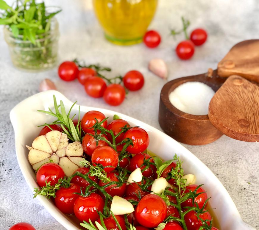 El otoño tiene sus cosas buenas. Ese clima mágico maravilloso entre el verano y el invierno (que en Madrid dura 30 segundos). Y esa sensación de nuevos comienzos que trae cada cambio de estación. Y el otoño es también cuando empiezo a preparar estos Tomates Confitados deliciosos que mejoran cualquier plato al que se los añadas. Cocinados lentamente hasta el punto perfecto y con una concentración de sabor increíble, estos Tomates Confitados elevarán todos tus platos. Y lo mejor, sólo requieren 5 minutos de preparación y el resto del trabajo lo hace el horno. Ah! y no contienen gluten y son aptos para veganos. Quieres saber cómo hacerlos? Continue reading TOMATES CONFITADOS